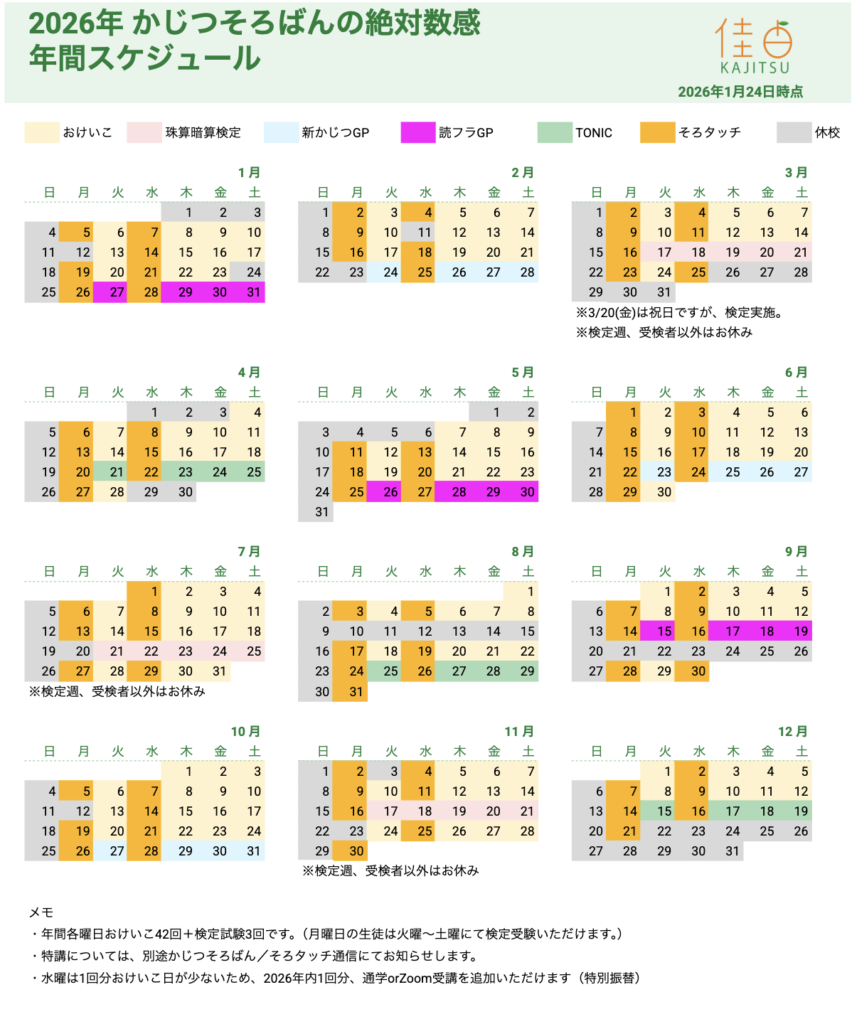 上記検定実施日は、通常のおけいこはなく、検定試験のみとなります。